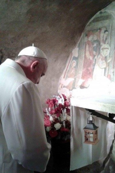 A Szentatya váratlan útjának célja az volt, hogy megtekintse a helyet, ahol Szent Ferenc először állított betlehemet, megalapítva ezzel az azóta is élő hagyományt. A Szentatya megtekintette a grecciói ferences kegyhelyen a betlehemi jászlat és imádkozott a betlehemi kápolnában.