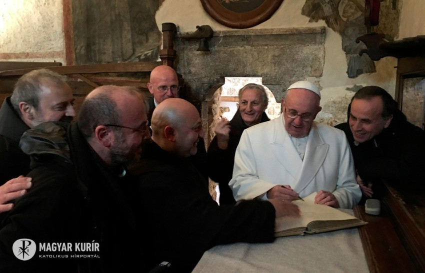 Ferenc pápa a greccói ferences betlehem vendégkönyvében ezt az üzenetet hagyta: