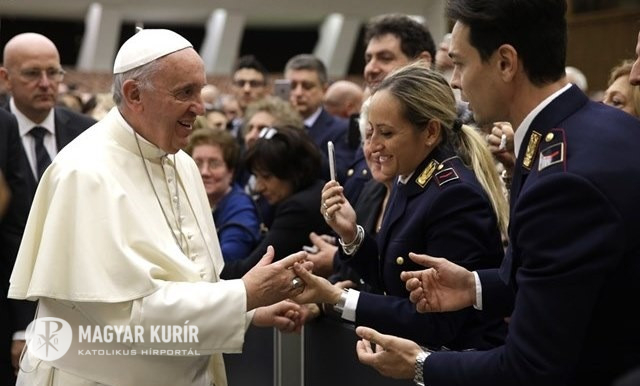 A rendőrség által végzett tevékenység ezekben az években határozottan hozzájárul a menekültáradat hatásának kezeléséhez. Élen járnak a háborúk és üldözések elől Olaszországba igyekvő bevándorlók elsődleges fogadásában, illetve a gátlástalan emberkereskedők elleni fellépésben – hangsúlyozta a pápa.
