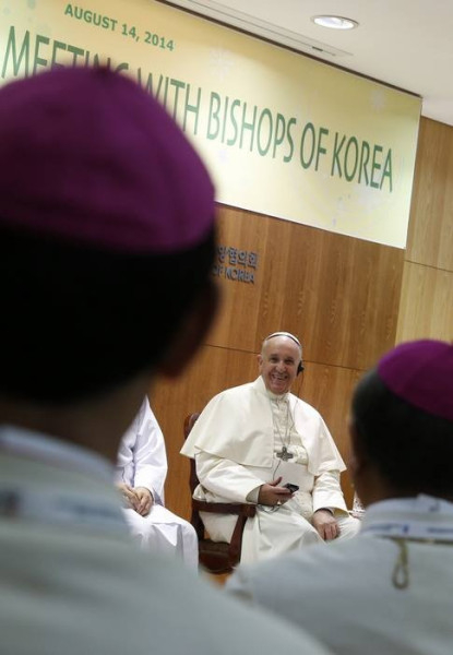 Ferenc pápának a koreai püspökökhöz intézett beszédéből a szentszéki szóvivő kiemelte: a hivatalos szöveg három kiegészítéssel hangzott el. A pápa arra hívta a főpásztorokat, hogy ne engedjenek a klerikalizmus kísértésének, figyelembe véve, hogy a helyi egyházat világi hívők alapították. Továbbá javasolta nekik, hogy álljanak közel a plébánosokhoz és a papokhoz, támogassák őket lelkipásztori szolgálatukban. A harmadik szóbeli kiegészítés pedig az volt, hogy az egyház legyen szegény a szegények között, mert egy erős egyház egy ilyen fejlett országban ne a gazdasági tényezőkre figyeljen.