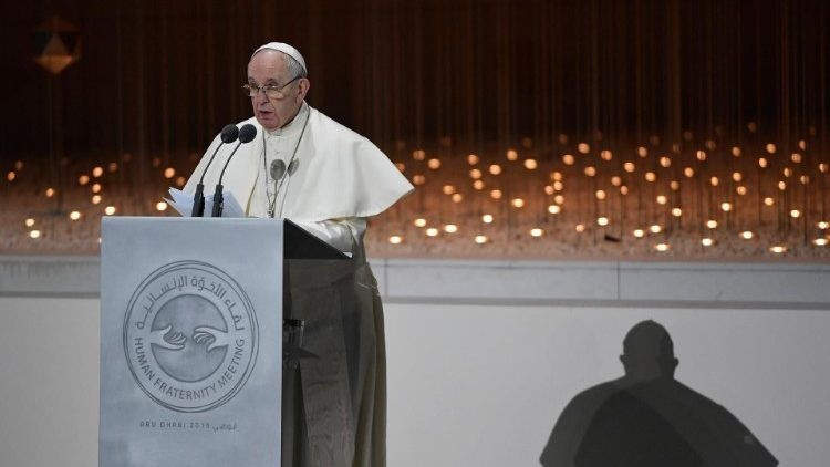Ebben az összefüggésben szeretném kifejezni örömömet, hogy éppen itt, Abu-Dzabiban rendezték meg tavaly novemberben a biztonságosabb közösségek érdekében létrehozott vallásközi szövetség első fórumát a gyermekek méltóságáról a digitális korban. Ez az esemény befogadta az egy évvel korábban ugyanerről a témáról Rómában tartott nemzetközi kongresszus üzenetét, amely kongresszust teljes mértékben támogattam és bátorítottam. Köszönetet mondok tehát az összes vezetőnek, akik elkötelezetten dolgoznak ezen a területen, és biztosítom őket, hogy én is és a Katolikus Egyház is szolidárisan követi és tevékeny részvétellel támogatja a kiskorúak védelmének ezt a roppant fontos ügyét, a védelem összes dimenziójában.