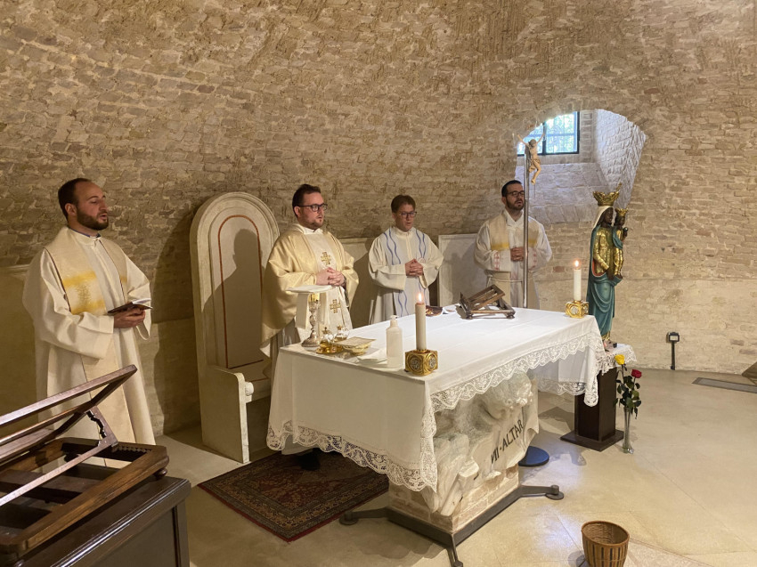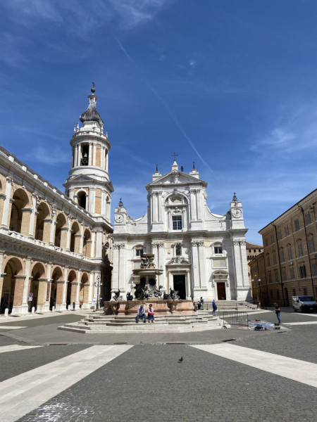 A vasárnapot az egyik legősibb Mária-kegyhelyen, Loretóban töltötték. A bazilikában a helyi magyar közösség néhány tagjával együtt ünnepelték a szentmisét, majd volt lehetőségük az elcsendesedésre, egyéni imára is. A bazilika legfőbb ékessége és kincse Szűz Mária názáreti háza. A hagyomány szerint 1291-ben, amikor a keresztes lovagokat kiűzték Palesztinából, Szűz Mária házának első részét angyalok átszállították előbb Tersattóba, majd Loretóba. A kutatások és tanulmányok megerősítik azt a feltevést, hogy a Szent Ház köveit hajóval szállították Loretóba az Epiruszban uralkodó Angeli család kezdeményezésére.
