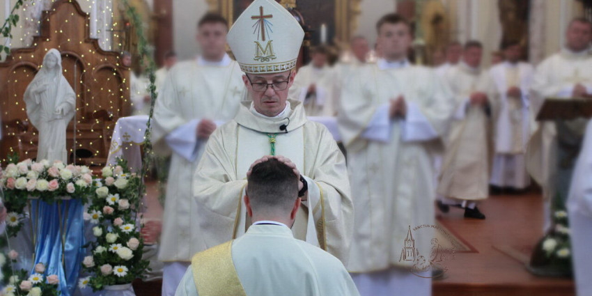 Ezt követően az áldozópap a püspök elé térdelt, aki kézrátétellel imádkozott érte.