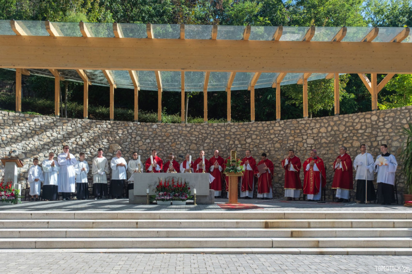 A zarándoklat ünnepi szentmiséjét a szabadtéri oltárnál, a Szent Vér-ereklye közelségében ünnepelték.