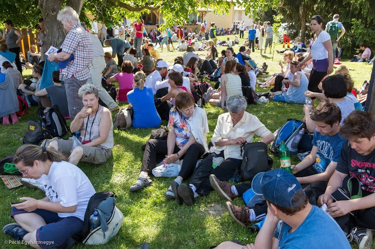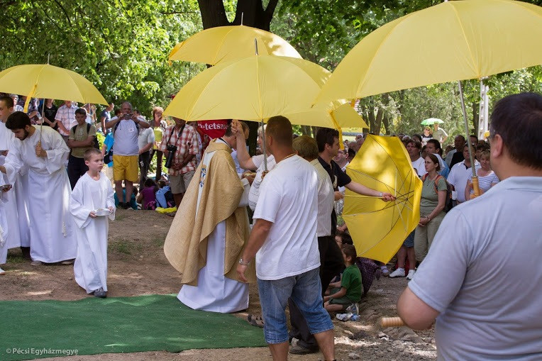 A Pécs és Máriagyűd közti huszonöt kilométeres útvonalat gyalog vagy kerékpárral tehették meg a zarándokok, akik két pihenő után érkeztek a megújuló kegyhelyre. Itt elcsendesedésre, imára is volt lehetőségük, majd délután fél 3-kor püspöki ünnepi szentmisén vehettek részt a kegytemplomban.