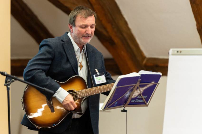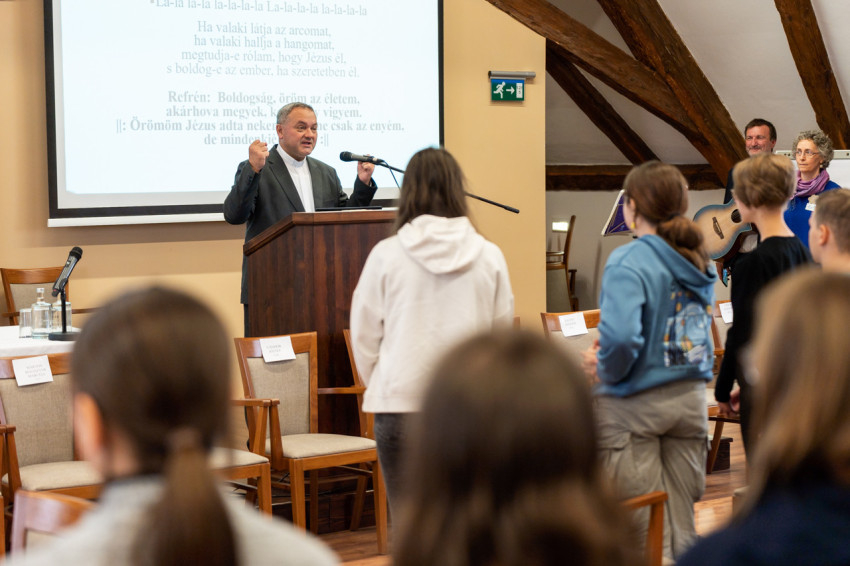 Iváncsits Tamás hitoktató dalaival, zenei szolgálatával és gondolataival élővé tette a tankönyvi leckét, a résztvevők nagy örömére.