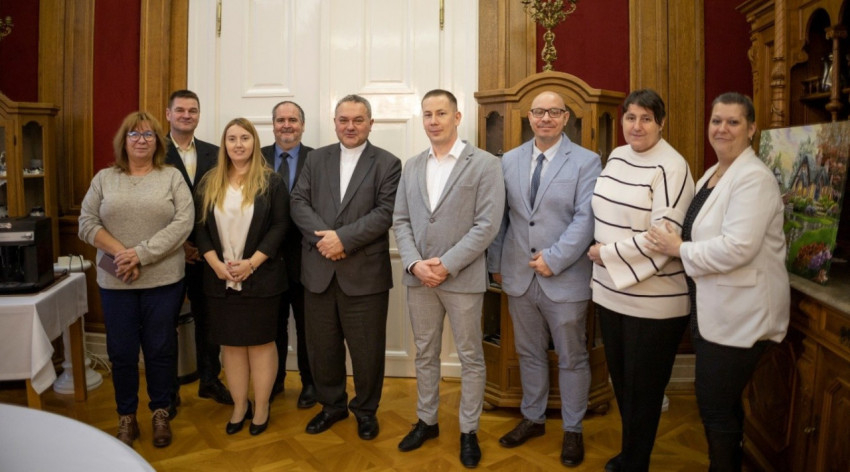 A pécsi székesegyház és a püspöki palota a börtön épületének közelében található, rövid sétával érhető el az intézetből. A delegációt a főpásztor személyesen fogadta a püspöki palota bejáratánál, majd a Pécsi Egyházmegye egyik idegenvezetője mesélt az épület történetéről, körbevezetve az érdeklődőket.