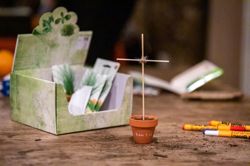 „Nagyböjti ráhangolódásként gyerekeknek szóló feladatok gondolkodtattak el minket, felnőtteket is. Mustármagot ültetve kis keresztutunk cserepeibe szembesülhettünk hitünk kicsinységével, mely, ha jól öntözzük, felnőhet a kereszthez.”