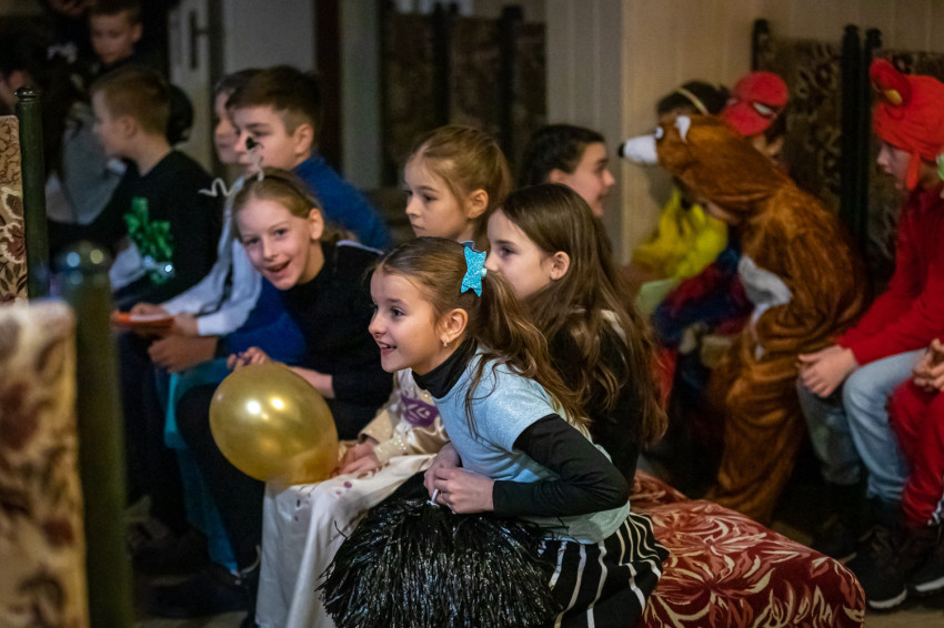Farsangfarkán a gyerekek maszkot öltve teljesítettek különféle ügyességi és egyéb feladatokat, így bevonva még a legfélénkebbeket is; még az apukák kreativitására is szükség volt.