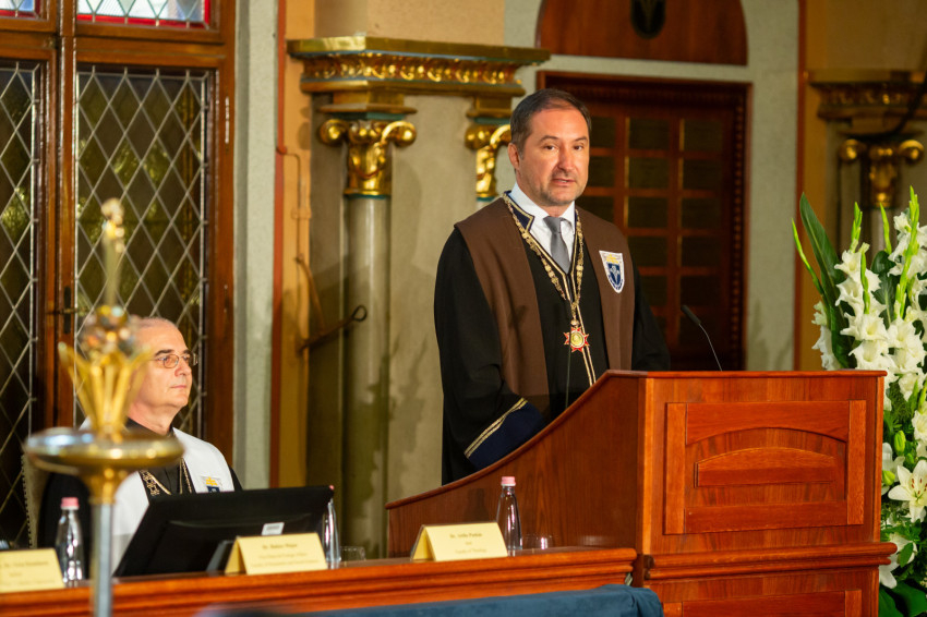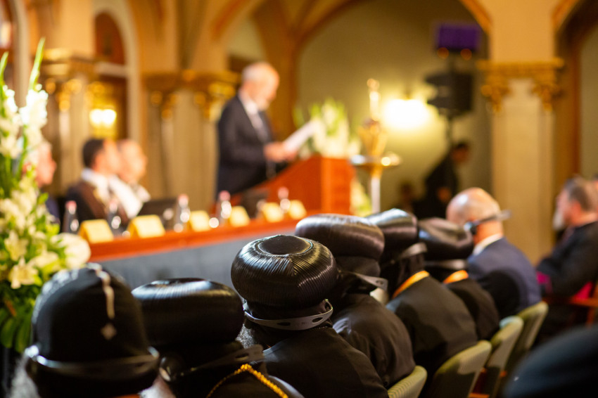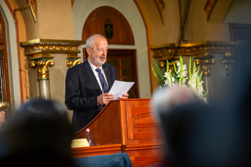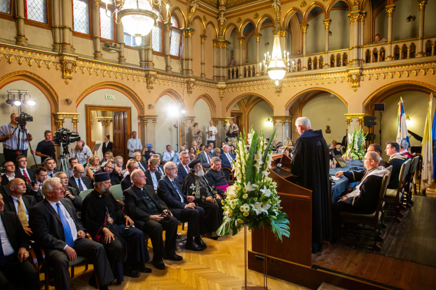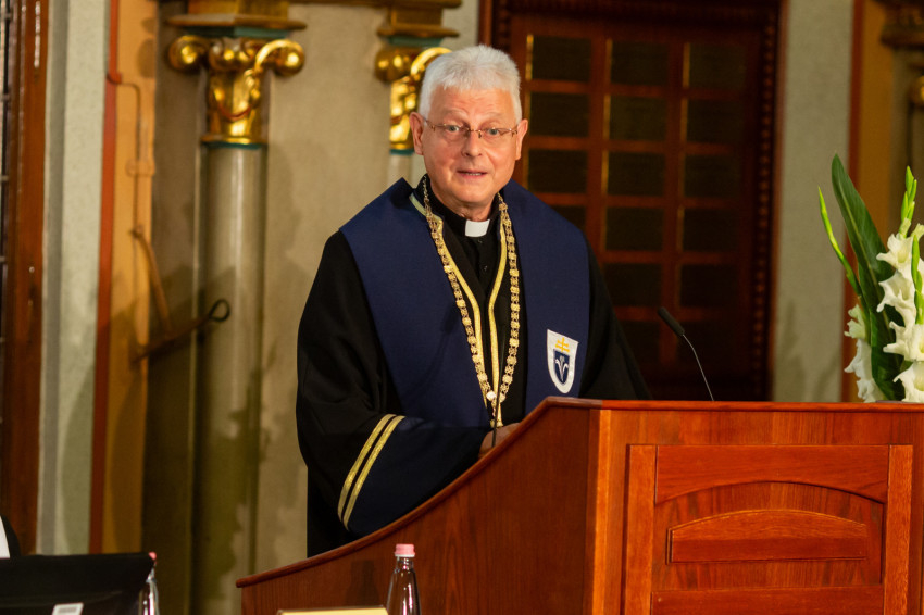 Kuminetz Géza rektor tolmácsolta Erdő Péter bíboros, prímás erre az alkalomra megfogalmazott jókívánságait.