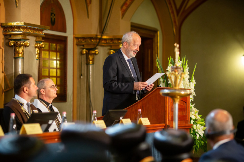 Az egyetem életében vannak kitüntetett pillanatok, ezek közé tartozik a díszdoktorrá avatás is. Ilyen ünnepi alkalomra ritkán kerül sor, minősítetten kiemelkedő esemény – mondta a rektor, majd kifejtette: a díszdoktorrá avatáson „nem csupán a pozitív tudományok területén elért eredményeket (amelyeket jóra és rosszra is lehet használni) ismerjük el, hanem elsősorban »a nagyobb bölcsesség« érdekében tett erőfeszítéseket díjazzuk”.