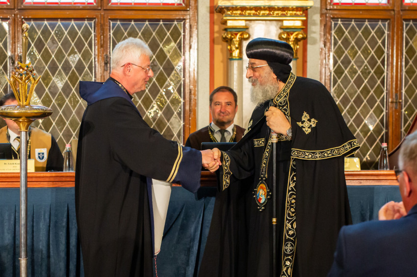 A kopt pápa éltútjáról szólva elmondta: ami következetesen végigkísérte működését a természettudományoktól a teológiáig és a bölcsészet- és társadalomtudományokig, az a gyógyítás. Ezt a küldetést a gyakran elnyomásban és konfliktusok között élő egyiptomi és a világban szétszóródott kopt keresztények vezetőjeként is végzi. A világnak egyre inkább szüksége van a hozzá hasonló (lelki) gyógyítókra.
