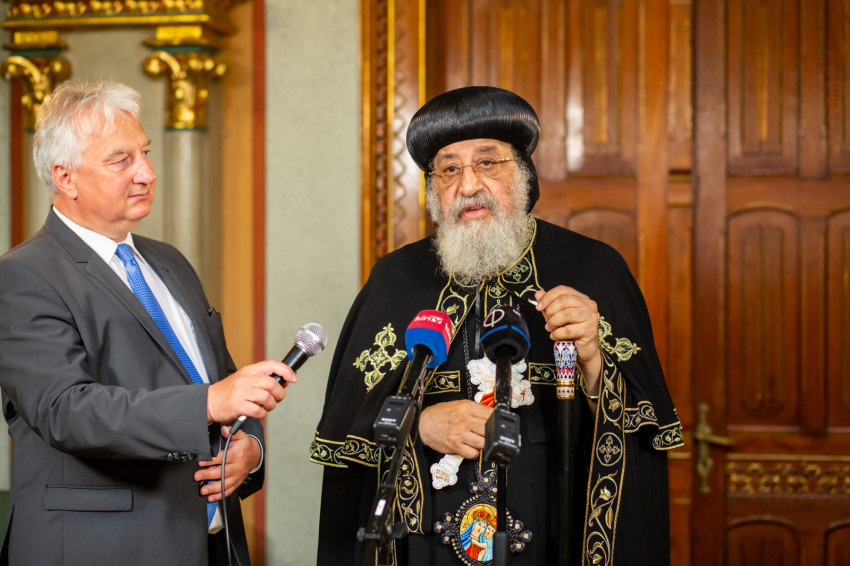 Az ünnepi eseményt követően a kopt pápa és Semjén Zsolt miniszterelnök-helyettes nyilatkozott a sajtónak a Szent II. János Pál teremben.