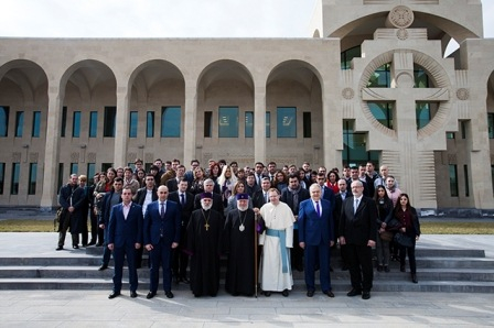 A PPKE csoportja látogatást tett Ecsmiadzinban, az örmény apostoli egyház központjában, ahol fogadta őket Őszentsége II. Garegin, minden örmények ecsmiadzini katholikosza. Az örményeket tartják a világ első keresztény nemzetének, akik 301-ben vették fel a kereszténységet. Az örmény egyházfő megemlékezett arról, hogy örmények Magyarországon már a középkor óta jelen vannak, történeti kapcsolatuk baráti nemzetté tette a két népet. II. Garegin kiemelte, hogy Ferenc pápa 2015 áprilisában a Szent Péter-bazilikában az örmény népirtás emlékezetére szentmisét celebrált, idén nyáron pedig örményországi látogatásra készül. A mélyülő kapcsolatok egyértelmű jeleként értelmezte II. Garegin a PPKE és a jereváni Örmény Állami Pedagógiai Egyetem létrejövő együttműködését és annak tartalmát.