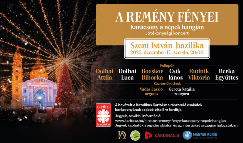 A Katolikus Karitász jótékonysági koncertjét december 17-én, szerdán 20 órai kezdettel tartják Budapesten, a Szent István-bazilikában A remény fénye – Karácsony a népek hangján címmel.
