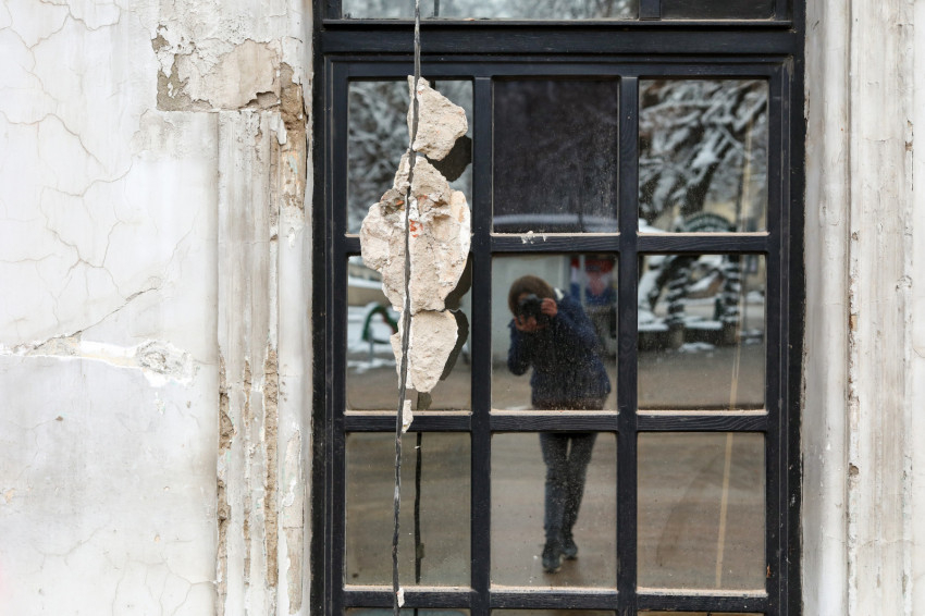 Délután Petrinja történelmi városközpontjába érkeztünk. Nemrég még Stjepan Vego hátborzongató elbeszélését hallhattuk az ott történtekről, de az interneten is kering az a videó, ahogy a város polgármestere éppen a főrengés idején tart sajtótájékoztatót az előző nap keletkezett károkról, és nemcsak a mikrofonok remegnek meg, hanem az emberek is alig bírnak talpon maradni.