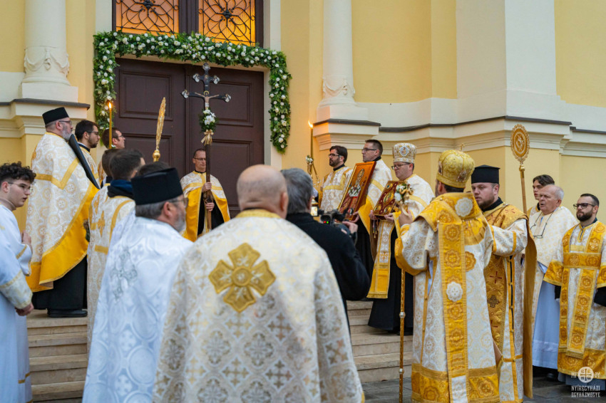 A vecsernye szertartása során körmenetben vitték a Nagy Szent Bazil Görögkatolikus Általános Iskolából azt a Szentháromság-ikont, amelyet minden hétvégén gyalogos zarándoklattal visznek majd át az adott egyházközség tagjai egy szomszédos parókiára. Az első állomás január 4-én Hajdúnánás lesz.