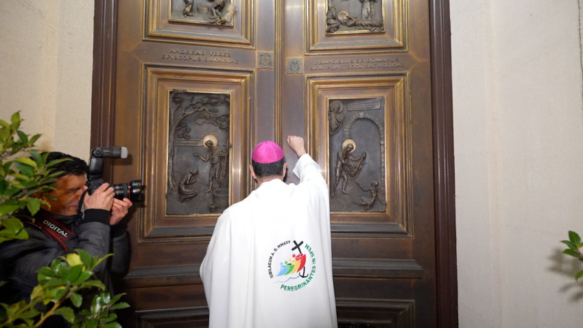 A most kezdődő szentév felhívás arra, hogy személyes életutamat, összevessem a Krisztuséval. Lehetőség arra, hogy Jézus élete tükrében felülvizsgáljam, hogy milyen irányt vett az életem, merre tart az életem, mi az életem reménysége. Bátorítás arra, hogy úton maradjunk, maradjon nyitott a szívünk; hogy belépjünk azon az ajtón, az ő országa ajtaján, amelyet Isten nyitott előttünk és ezért már soha, „senki be nem zárhat”. (Jel 3,8)