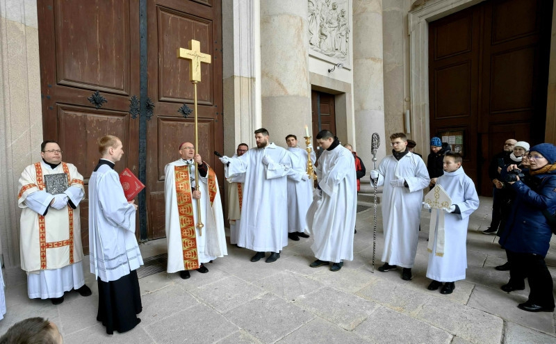 A Barátok templomában gyülekeztek a hívek december 29-én, vasárnap reggel a szentmise első állomásához, amely során a dicsőítő imádságot követően Marton Zsolt püspök megnyitotta a szentévet a Váci Egyházmegyében.