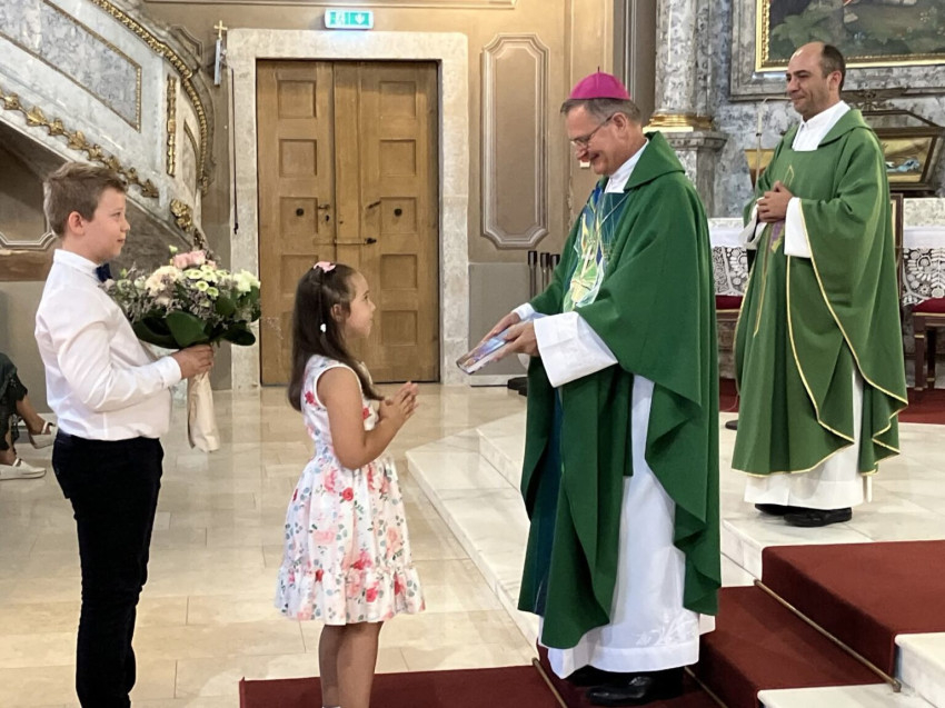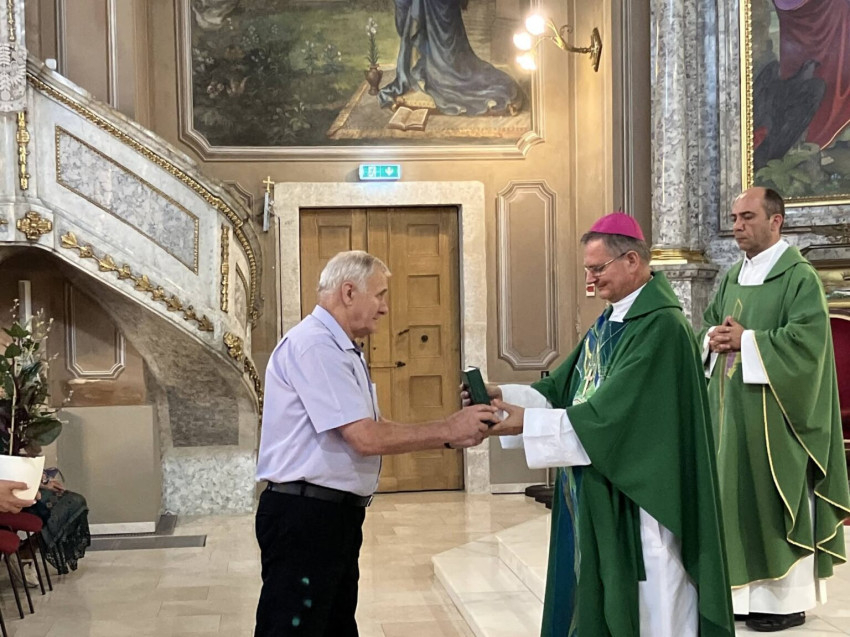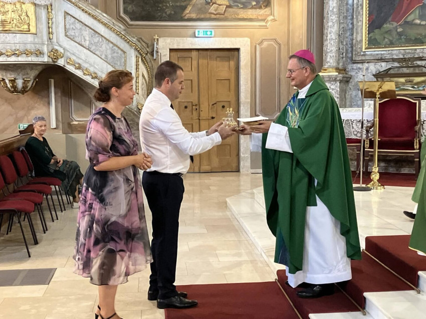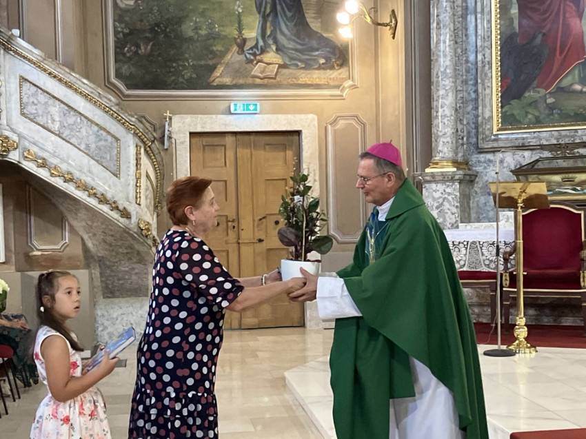 Az ünnepi szentmise során a felajánlási körmenetben a nagyszülők, unokák, gyermekek és a kórházpasztorációs iroda vezetője átadták szimbolikus adományaikat Schönberger Jenő püspöknek, áldást kérve életükre, családjukra, szolgálatukra.