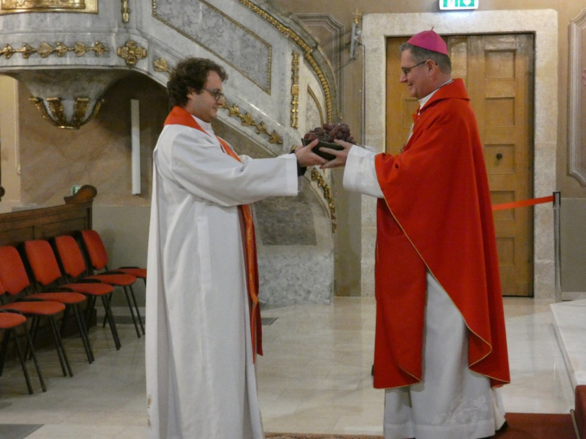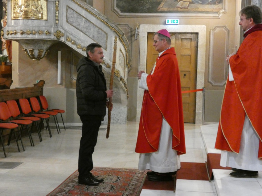 A főpásztor a szentmise elején köszöntötte Alfréd atyát, paptestvéreit és a munkatársakat, akik az egyházmegye különböző plébániáiról érkeztek erre az alkalomra. A püspök elmondta: a gondviselés éve véget ér, és kezdődik egy új lelkipásztori év, a remény éve. „Ebben a szentmisében megköszönöm mindenkinek a munkáját, aki odatette magát, hogy még a vírusos időszak és a háborúval megterhelt időszak is egyre közelebb vigyen bennünket a Jóistenhez, aki a mi gondviselő Mennyei Atyánk. Hálát adunk, mert a szentmise hálaadás, de ugyanakkor kérés is, hiszen a hálaadásunkkal mindig a kérést is odatesszük a Jóisten elé, hiszen Jézus mondta: »Kérjetek, és akkor adnak nektek.« Hát reménnyel telve kérjünk! Kérjük a Jóistennek a további segítségét és áldását, arra az új lelkipásztori tervre is, amit elkészítettek a munkatársaim, és amit nagyon remélek, hogy a plébániai munkatársaink is nagy szeretettel fognak tudni használni. Ők mint a munkatársaim meghosszabbított kezei, tovább nyújtják azt, hogy mindenki meríthessen belőle.”