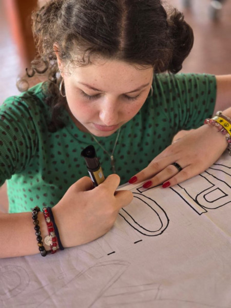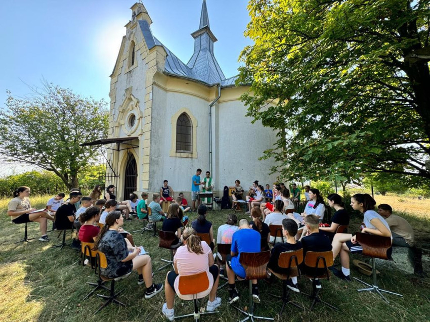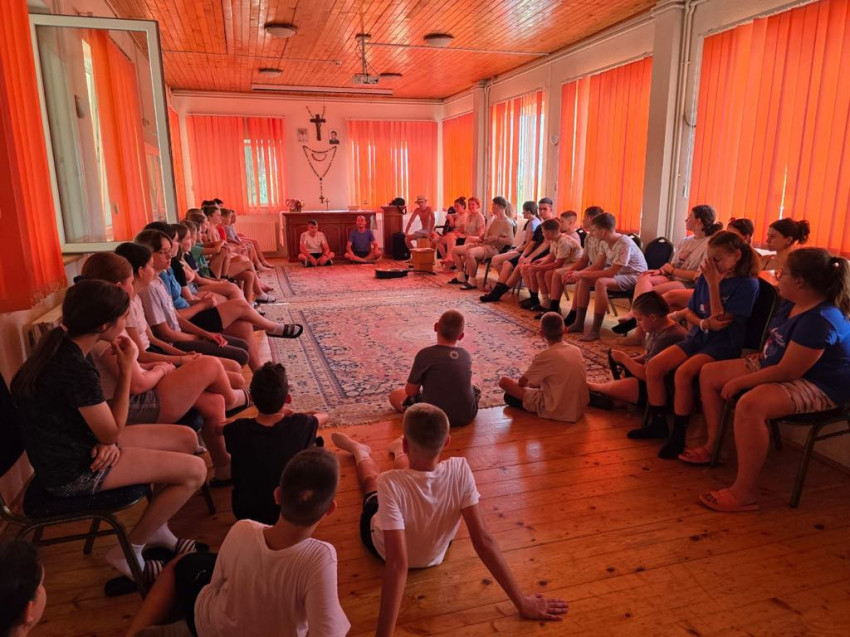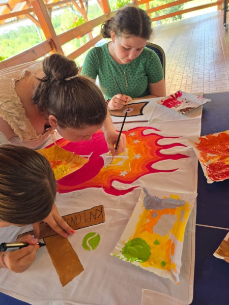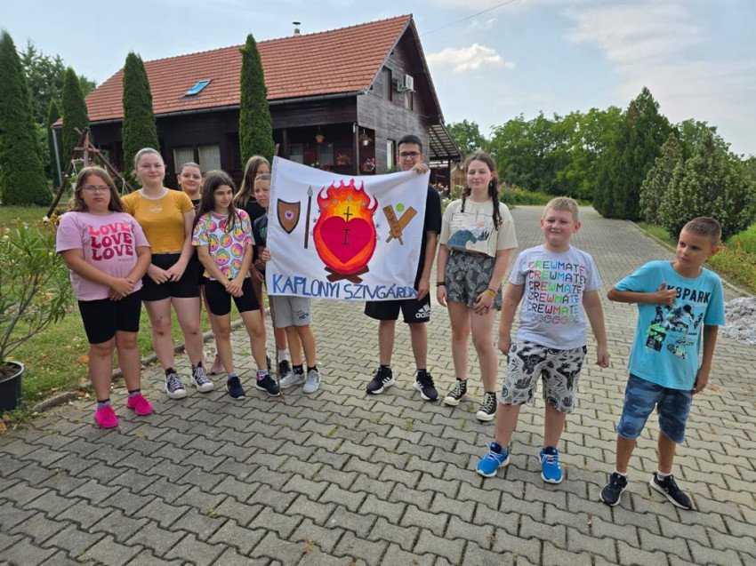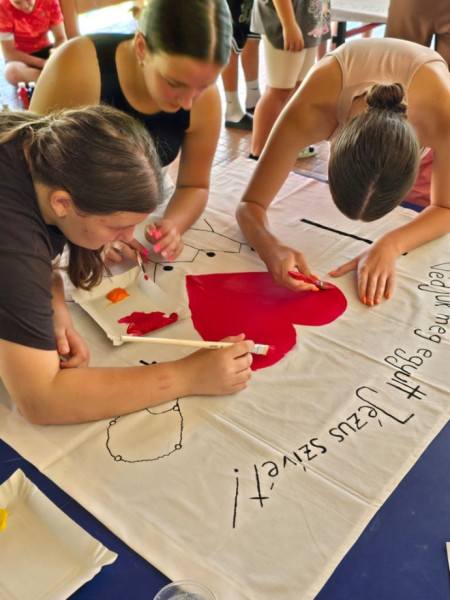 Szép pillanata volt a 2024-es tábornak, amikor ezekre az üzenetekre alapozva arra bátorították a gyerekeket, hogy csapatonként fogalmazzák meg ők is a Szívgárdához fűzött reményeiket, majd készítsék el csapataik zászlaját.