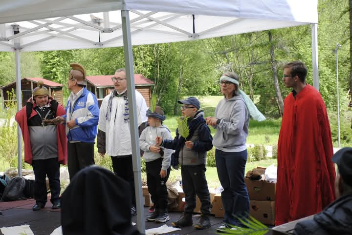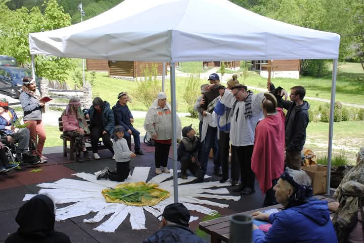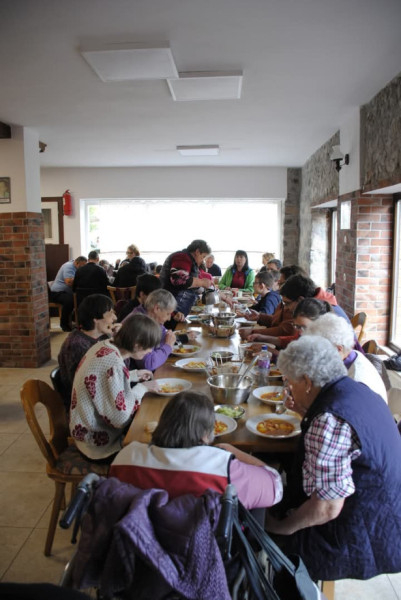 A finom ebéd után külön foglalkozás várta a szülőket és a védenceket. A fogyatékkal élők húsvéti misztériumjátékot játszottak. A virágvasárnapot felidéző „pálmalengetős” hozsannát éneklő társaság végighaladt Jézus szenvedésének állomásain, egészen a feltámadásig. Együtt örvendeztek azon, hogy Jézus él. Végül a Szentlélek eljövetelét is megélhették, kezükben tartva egy-egy lángoló fáklyát. „Ő az Úr, ő az Úr, meghalt értem…, feltámadott…, betölt engem Szentlelkével” – szólt az ének.
