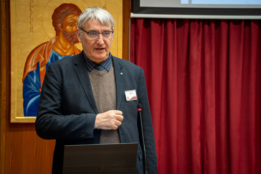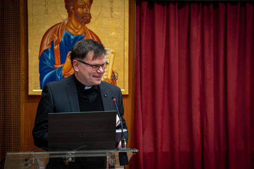 Galambvári Péter délelőtti szekcióban elhangzott előadásának címe Az exarchátus mint részegyház eredete és mai szabályozása volt.