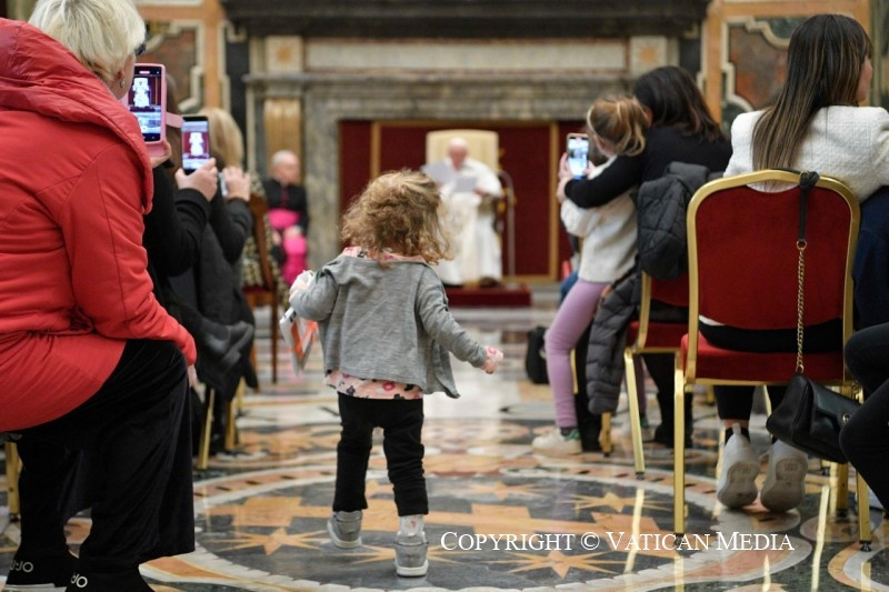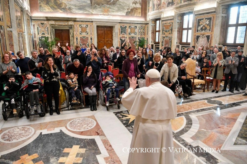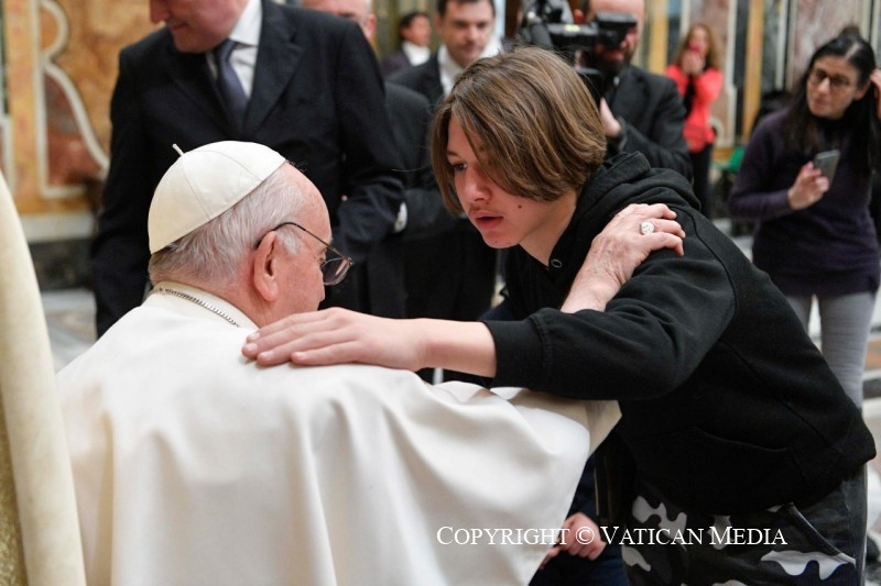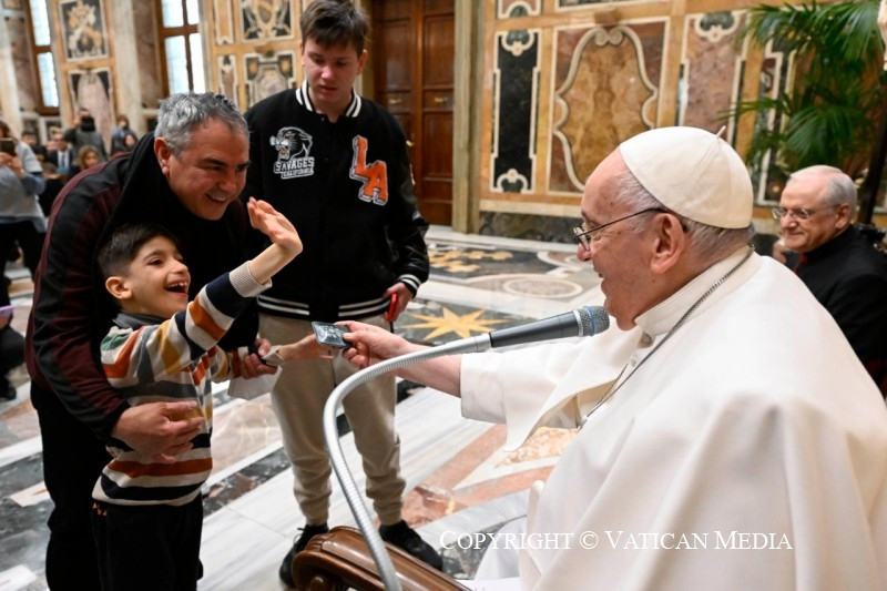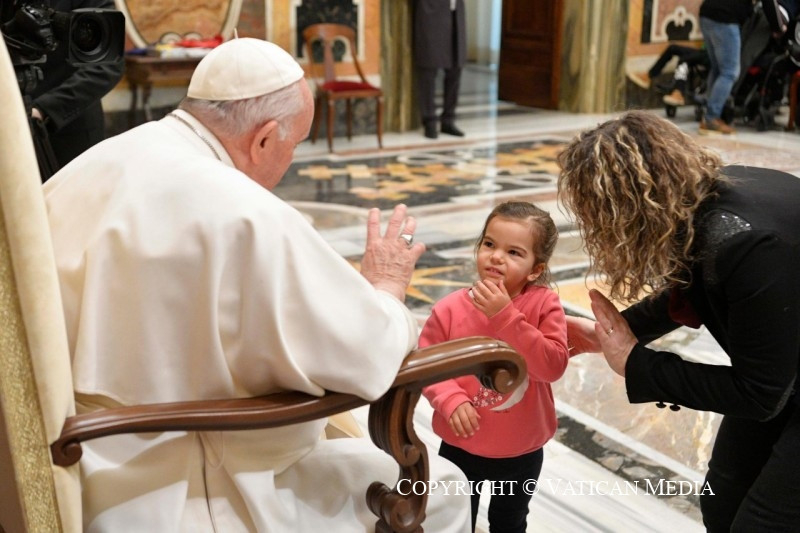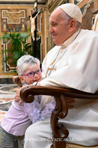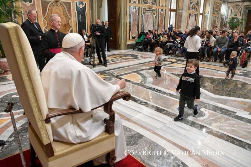 Ferenc pápa a ritka betegségekkel foglalkozó szervezet csoportjához beszéddel fordult, amelyet a gyermekek és fiatalok miatt félbeszakított azért, hogy beszélgethessen velük, osztozhasson fájdalmaikban és reményeikben.