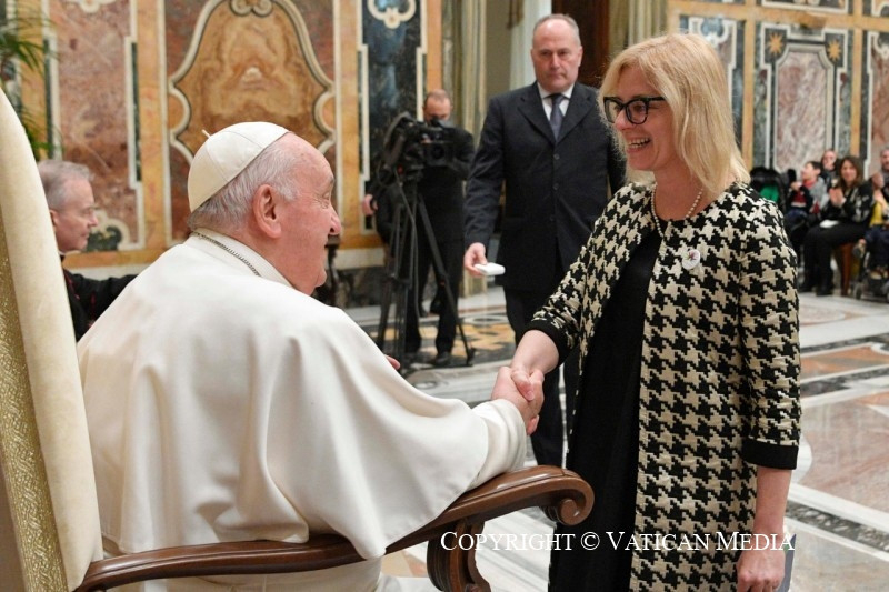 Ferenc pápa végül a Szűzanya oltalmát kérte a családok, minden ember számára, aki ritka betegséggel küzd, majd áldását adta rájuk.