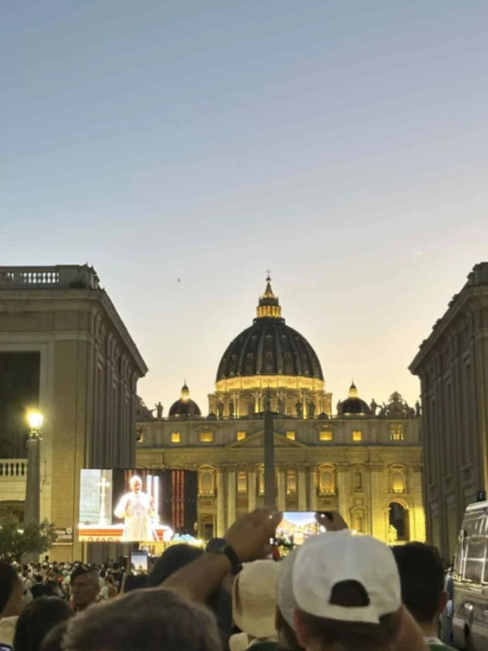 A második napon az utazás fáradalmait a tengerparton letéve (...), felfrissülve érkeztünk meg a Szent Péter térre, a nyitó szentmisére, ahol csodálattal tekintettük meg távolról először a Szent Péter-bazilikát.