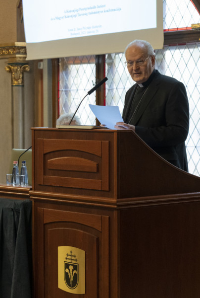 A nyitóelőadást eminenciás Erdő Péter bíboros esztergom-budapesti prímás-érsek tartotta Az ordó szentsége és az egyházkormányzati hatalom témakörben. A gondolatmenet azt az alapvető kérdést elemezte, hogy a világi Krisztus-hívők rendelkezhetnek-e egyházi kormányzati hatalommal, s ha igen, akkor pontosan milyen értelemben. Az előadó rámutatott, hogy a II. Vatikáni Zsinat a korábbi felfogásnál erőteljesebben hangsúlyozta az egyházkormányzati hatalom szakramentális kötődését. Eszerint bizonyos értelemben már maga a püspökszentelés is közli a kormányzati hatalom lényegét, ha annak tényleges gyakorlásához utólagos jogi lehatárolás szükséges is. E két valóság egymástól kölcsönösen függő: megkülönböztetendők és egymástól el nem szakíthatók.