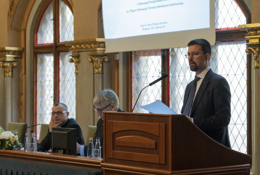 Ujházi Lóránd egyetemi tanár előadása A Praedicate evangelium fogalmi változásainak hatása a szentszéki külpolitikára címmel hangzott el. A szakértő azt vizsgálta, hogy az új konstitúció miként segíti a pápa nagyívű külpolitikai célkitűzését, a Katolikus Egyház válságkezelésben való aktívabb szerepvállalását. Rámutatott azokra a filozófiai, jogdogmatikai és teológiai elvekre, amelyek hozzásegíthetnek a tételes joganyag jobb megértéséhez, illetve utalt azokra a szentszéki intézményekre, amelyek természetüknél fogva kitüntetett módon járulnak hozzá az Egyház békemissziójához. Az előadó szerint az új konstitúció nemcsak a kúriareform lezárása, hanem Ferenc pápa béketörekvéseinek, az Egyház nemzetközi szerepvállalásának, illetve az immár globális méreteket öltő biztonsági kihívásokra adandó válaszoknak (értsd: hatékonyabb „válságreagáló képesség”) jogi és strukturális formalizálása is.