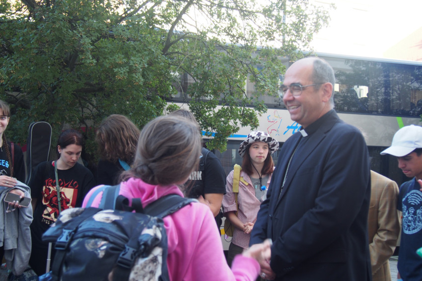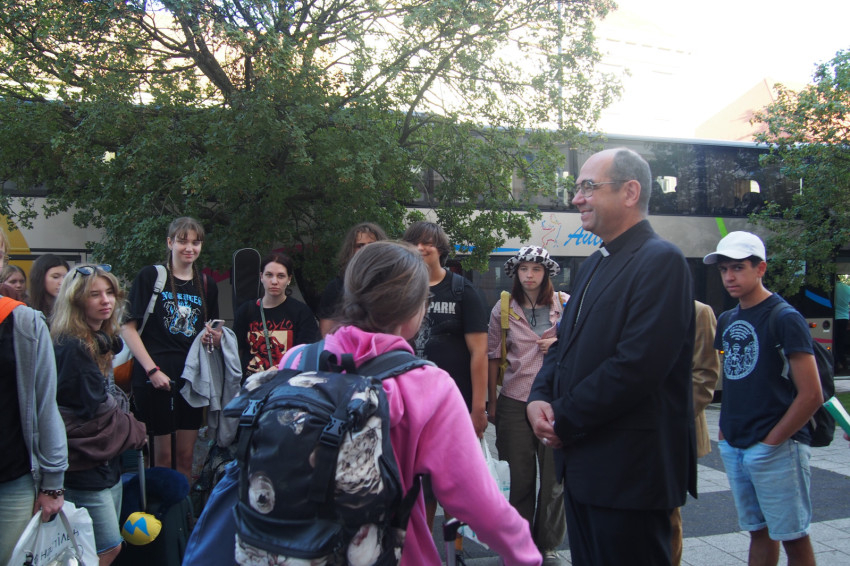 Székely János szombathelyi megyéspüspök személyesen fogadta és köszöntötte az érkezőket, elmondta nekik, milyen sokat imádkoznak a háborúban szenvedő országért, az otthonukat vesztett emberekért.