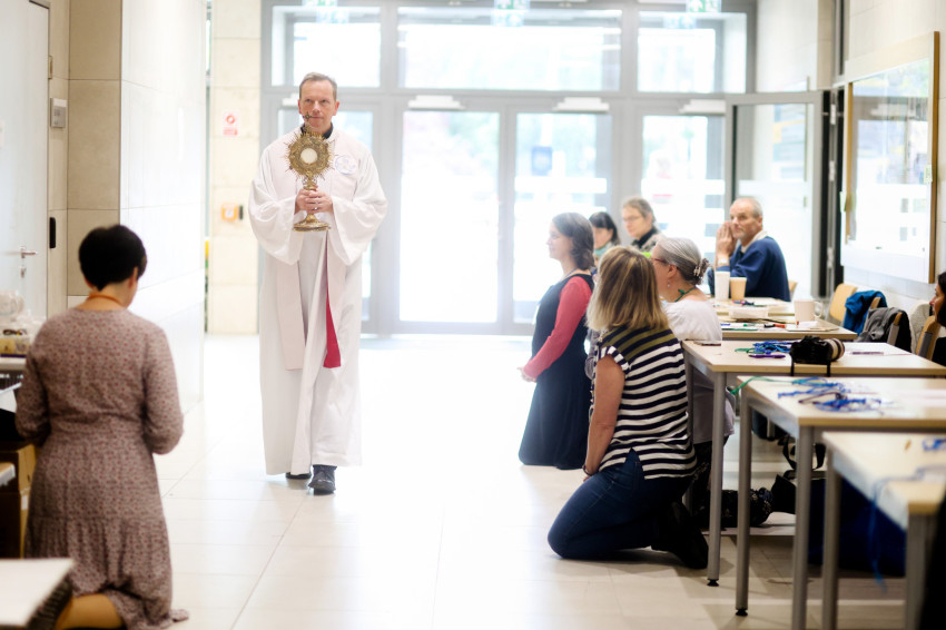 Az előadás után Fábry Kornél vezette a szentségimádást. Ebéd után kiscsoportokban osztották meg egymással a résztvevők az előadáson kapott élményeiket.