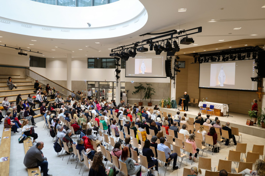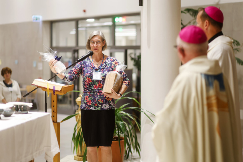 Majd egy márianosztrai szent sebet ábrázoló festményt bemutatva kifejtette, minden megsebzett ember felett ott a Szentlélek és a Mennyei Atya. Sebekkel lenni, miket ki tudja, mióta hordozunk, lehet küldetés. Ezen az úton olyan tájakat, szépségeket látsz, miket azelőtt soha nem vettél észre – bátorított. –
