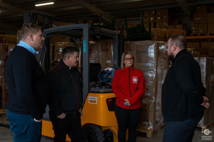 Az átadásnál jelen volt Obbágy Vera, a Nyíregyházi Egyházmegyei Karitász igazgatója, Pásztor Gergely igazgatóhelyettes, Tamási József Nikolász és Tolvaj János logisztikai munkatársak, valamint Zoltán György fődiakónus is, aki tolmácsolással is segítette a munkát.