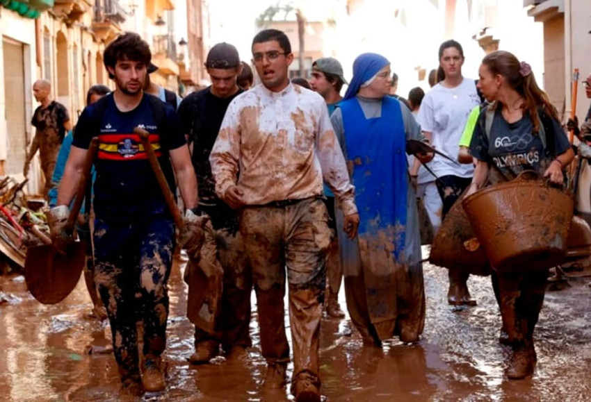 Valenciában a mindenszentek ünnepével kezdődött hétvége során önkéntesek ezrei álltak készen a Dana vihar által leginkább sújtottak megsegítésére, és a „sár angyalai” között számos egyházi csoport jelen volt. Papok, szerzetesnővérek és fiatalok az egyházmegye különböző részeiről csatlakoztak a központilag koordinált önkéntes akciókhoz. Benetússer, Alfafar, Paiporta és Sedaví – számol be az egyházmegyei sajtó – azon települések közé tartoznak, ahol fiatal önkéntesek szerveződtek, hogy az áradás miatt elöntött házakból, üzletekből, plébániákról kiszivattyúzzák a vizet.