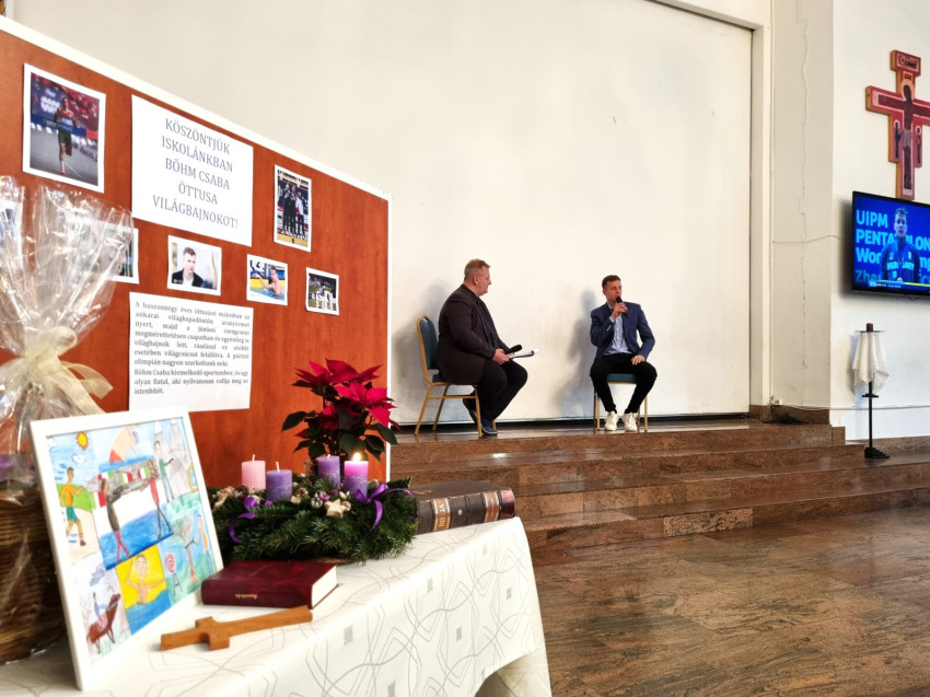 Az általános iskolában az advent eljövetele egy kiemelt személy eljövetelét is jelentette a Patronában, aki a magyar öttusasport büszkesége, világbajnok és olimpikon. Aki a 2024-es párizsi olimpián hazánkat képviselte, akinek csodálatos eredményei révén már sokszor csendült fel a magyar himnusz. Bőhm Csaba a magyar öttusa 2024-es világbajnoka és világkupagyőztese, valamint az idei nyári olimpia 13. helyezettje.