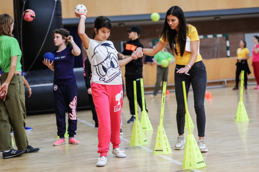 Egy sportnap elengedhetetlen része a bemelegítés. Ezúttal zenés gyakorlatokkal a Győri Audi ETO KC játékosa, Veronica Egebakken Kristiansen kézilabdás irányítóként „vezényelte” a nap bajnokait, hogy ne csak lélekben, de testben is felkészülten kezdődhessen a sportnap.
