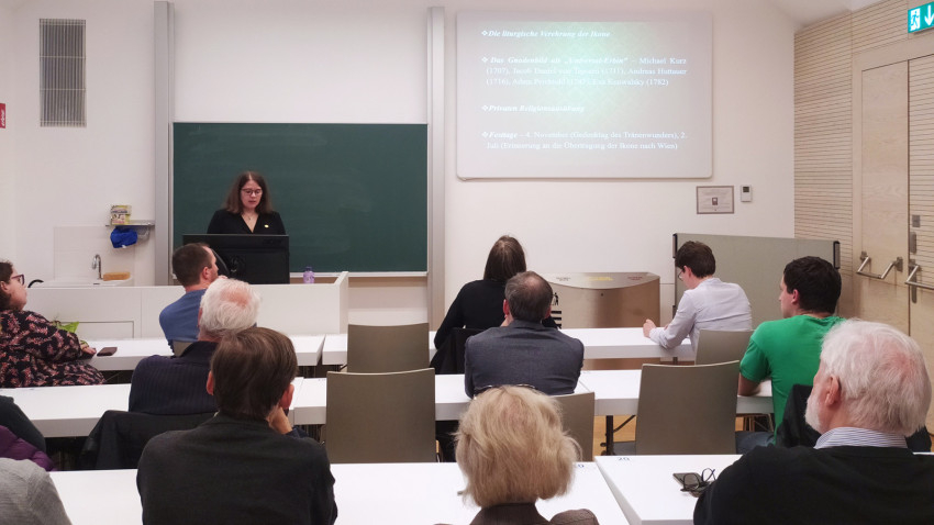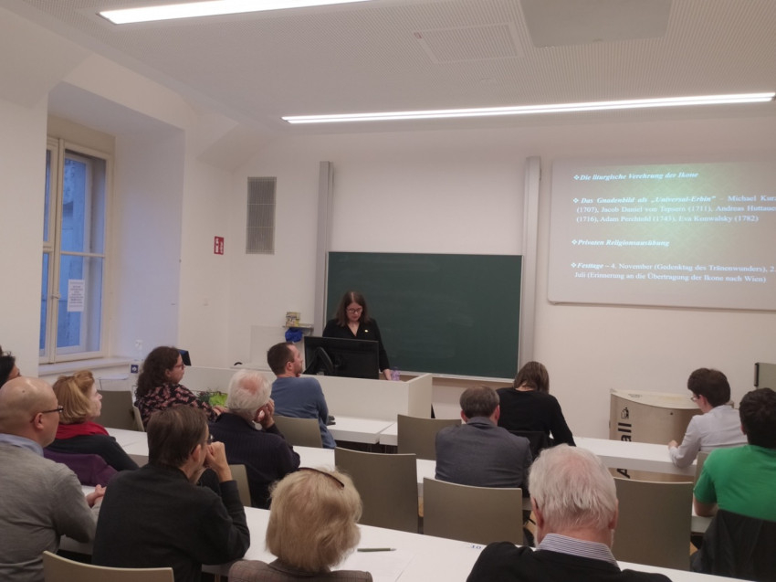 Földvári Katalin bemutatta az ikon kultuszának terjedését Közép-Európában, és azt, hogyan vált a kép az osztrák és magyar keresztények számára is közös vallási szimbólummá. A máriapócsi ikon nemcsak vallási szimbólum, hanem a nemzeti és etnikai identitás megőrzésének eszköze is volt a magyarországi görögkatolikusok számára – hangsúlyozta az előadó. – Az ikonnal kapcsolatos csodás események erősítették a hívek közösségi összetartozását, és hozzájárultak a görögkatolikus egyház megerősödéséhez a régióban.