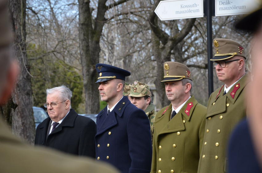 „Közeledvén március 15-i ünnepünkhöz, ma azon hőseink sírjai előtt állunk meg főhajtással, akik 175 évvel ezelőtt fogtak fegyvert a magyar ügyért. Egyszerre ünnep ez nekünk, és megemlékezés. Ünnepeljük a forradalom kitörését, amely népünk szabadságáról és az osztrák járom összetöréséről szólt, ugyanakkor megemlékezünk mindazokról, akik részt vettek ebben a harcban, akik életüket és vérüket adták a magyar szabadságért” – emelte ki megemlékező beszédében Demeter Attila alezredes, a Magyar Honvédség (MH) Tartalékképző és Támogató Parancsnokság Területvédelmi Igazgatóság, Társadalmi Kapcsolatok és Hadisírgondozó Osztály osztályvezető-helyettese a Fiumei úti sírkertben megtartott koszorúzáson.