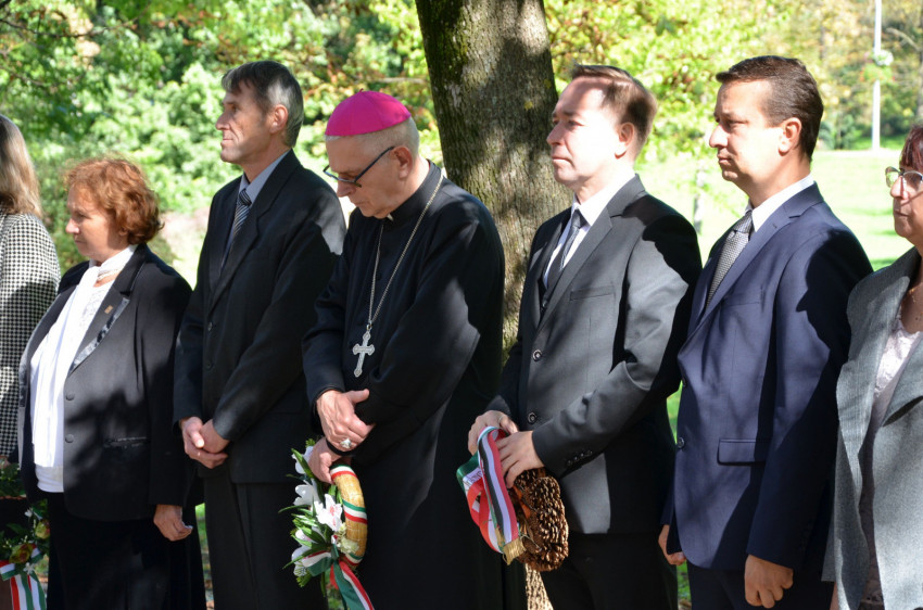 A szentmise után Berta Tibor katonai ordinárius, Kasuba Róbert plébános, valamint a város vezetői koszorút helyeztek el a vértanú tábori lelkész emléktáblájánál.