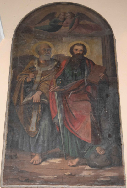 A 19. századi eredeti olajfestmény ma a barokk sekrestyeajtó fölött található, Szent Péter és Szent Pál apostolok álló alakjával az ugodi és tatai ábrázolástípus szerint.
