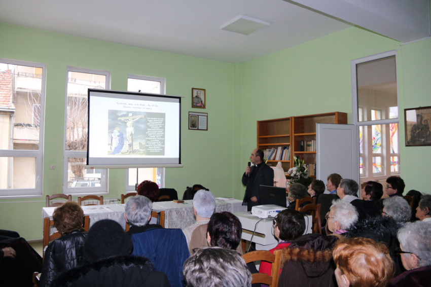 A lelkinapon Román János, a Szatmári Egyházmegyei Caritas vezérigazgatója tartott előadást Máriáról, Szent János evangéliumára alapozva, az apostol és evangélista ugyanis egyedüliként beszél Máriáról mint anyáról és asszonyról.
