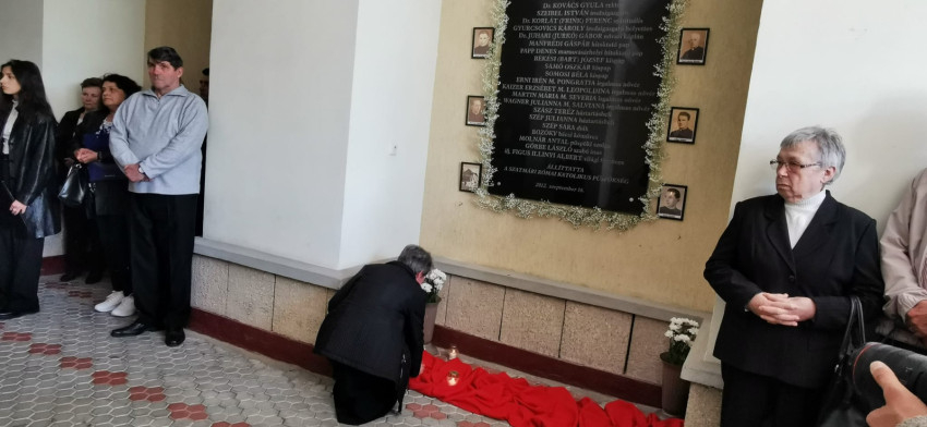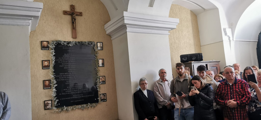 Miközben Fanea József püspöki titkár felolvasta az elhunytak neveit, az emléktáblánál elhelyezték az emlékezés mécseseit.