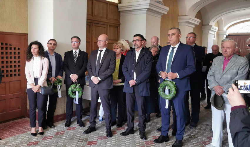A megemlékezésen koszorút helyeztek el az áldozatok emlékére állított táblánál, és imádkoztak az elhunytakért.