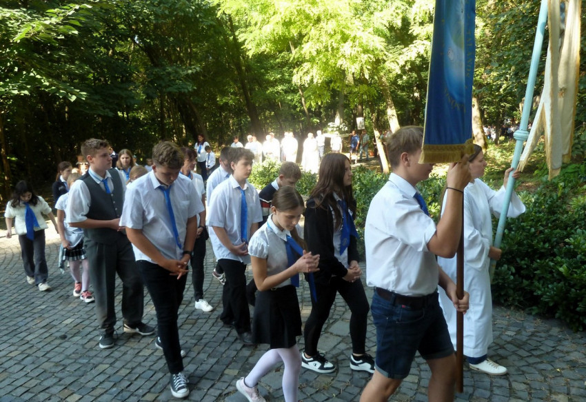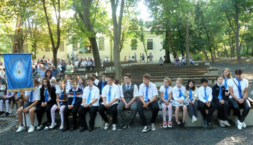 Az ünnepi szentmise főcelebránsa és szónoka Kispál György volt, aki külön is buzdította a hitoktatókat arra, hogy tanítsák meg a gyermekeket a rózsafüzér imádkozására és imádkozzák velük együtt a szentolvasót hittanórákon is, de azon kívül is. A Szűzanya szeptemberi fatimai megjelenésekor mondott első szavait idézte: „Imádkozzátok a rózsafüzért, hogy véget érjen a háború.” Meg kell érteni kicsinek és nagynak egyaránt, hogy nagy felelősségünk van abban, hogy elcsituljanak a fegyverek. Most annak van itt az ideje, hogy „imaadományokat” küldjünk Kárpátaljára és a többi háború sújtotta területre.
