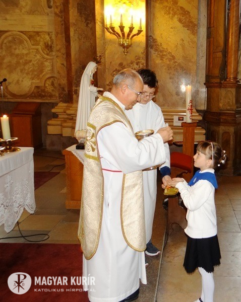 A Szent Imre Általános Iskola és Óvoda huszonkét harmadikos, egy negyedik, egy ötödik és egy hatodik osztályos tanulója járult először szentáldozáshoz május 16-án, szombaton. A kisebbek Farkas Rita hitoktató, a felsőbb évfolyamosok Ugrits Tamás püspöki biztos felkészítése után vehették magukhoz Jézus testét szüleik, családtagjaik, tanáraik ünneplő közössége előtt. Az ünnepi szentmisét Ugrits Tamás mutatta be.