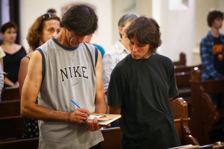 Elkísértük a közösség tagjait Budapesten a kilencedik kerületi, Gát utcai templomba, ahol szerdánként közös imádság előzi meg a szegények szolgálatát. Az imádságból – amelyet a közösség vezetője, Szőke Péter vezet – kapott hittel, reménnyel és erővel felvértezve aztán csoportokba rendeződve elindulnak, hogy meglátogassák a város különböző pontjain élő hajléktalan barátaikat, és egy ideje a menekülteket is. Szerkesztőségünk tagjai a Nyugati pályaudvarra induló csoporttal tartottak.